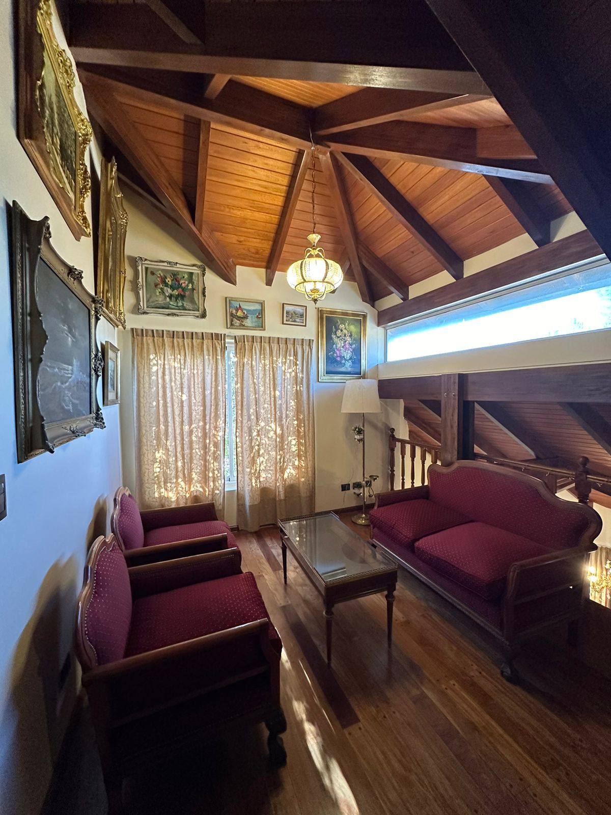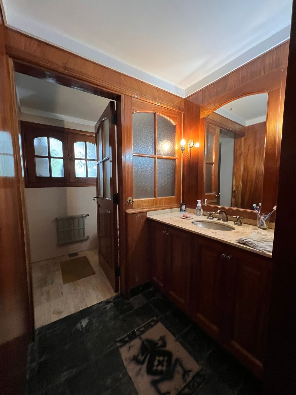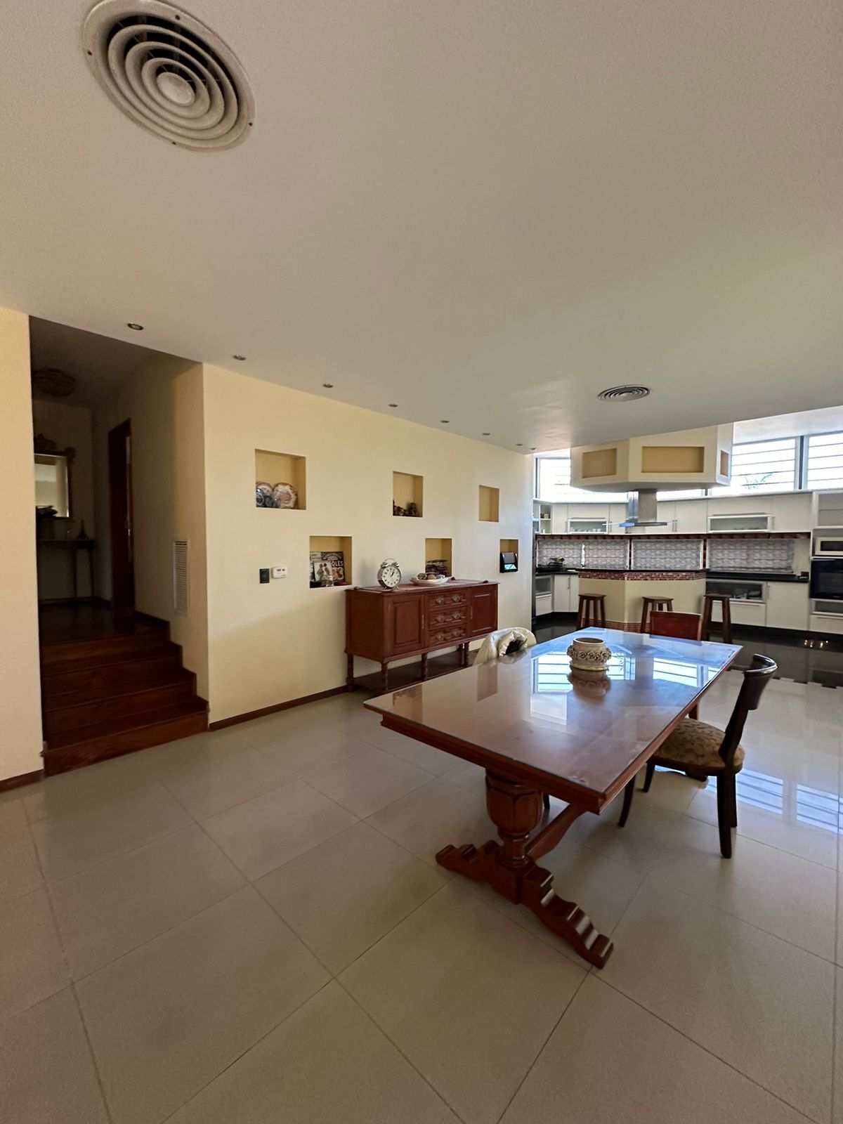 Casa con escritorio, living, cocina-comedor, baño, garage para 2 vehiculos, patio con piscina, quincho con asador y baño mas galeria. En planta alta tiene 3 dormitorios, uno en suite con vestidor, baño, cuarto de lavado y planchado, ascensor.