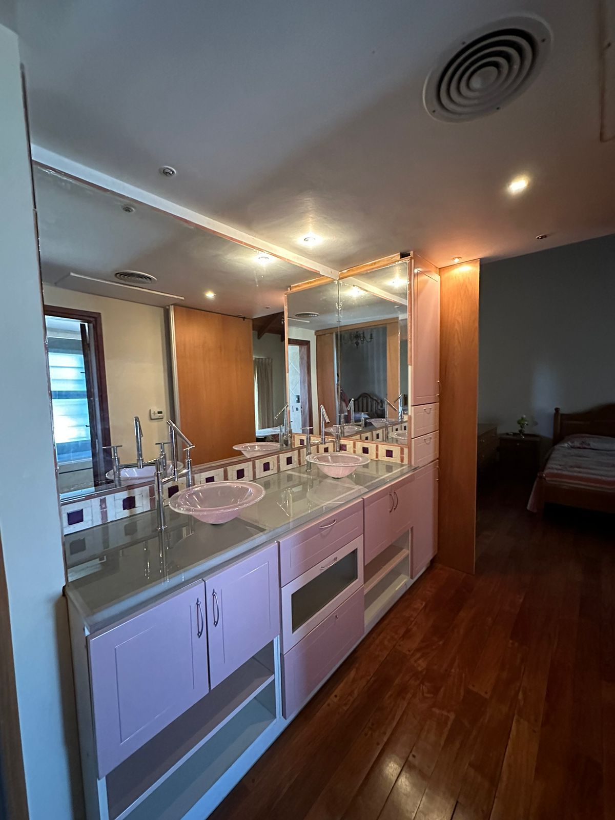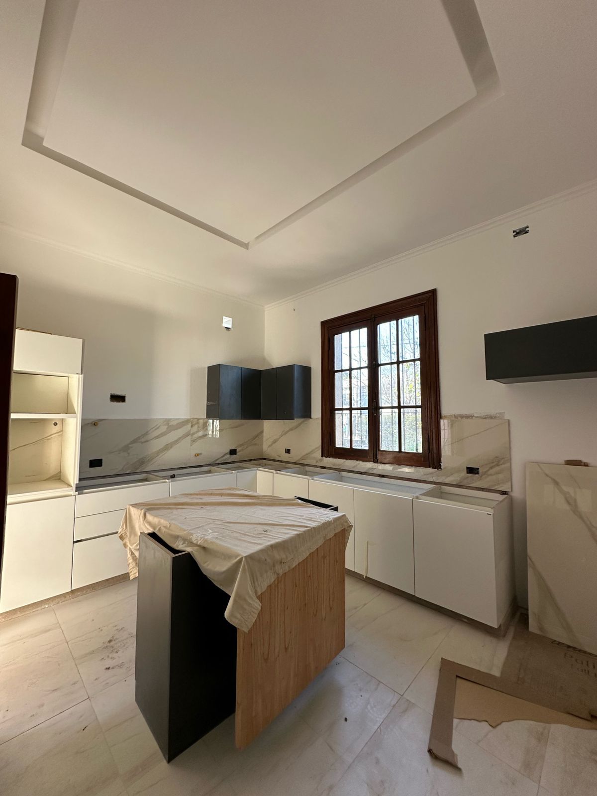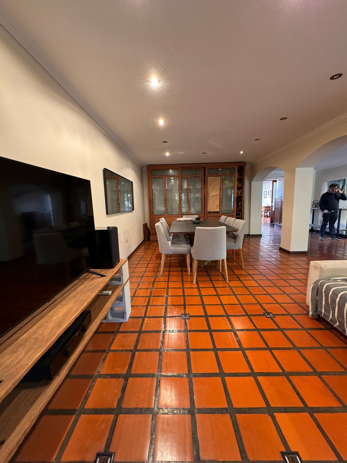 Casa con escritorio, living, cocina-comedor, baño, garage para 2 vehiculos, patio con piscina, quincho con asador y baño mas galeria. En planta alta tiene 3 dormitorios, uno en suite con vestidor, baño, cuarto de lavado y planchado, ascensor.