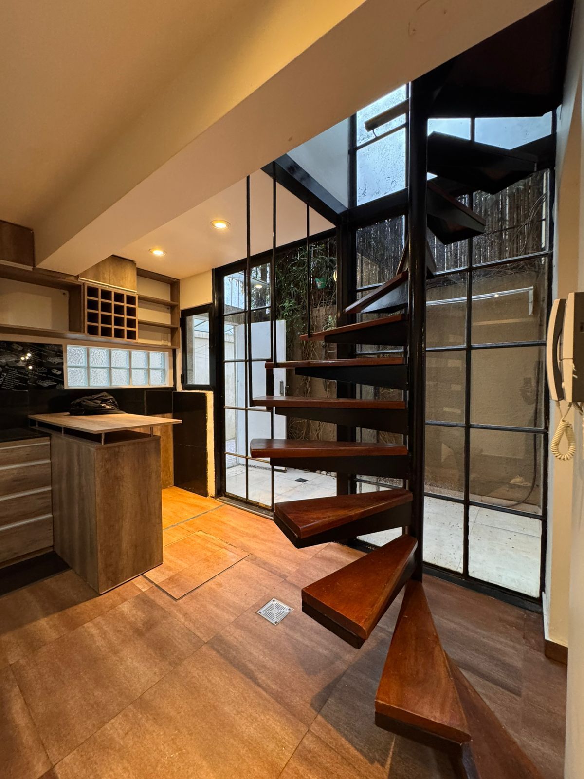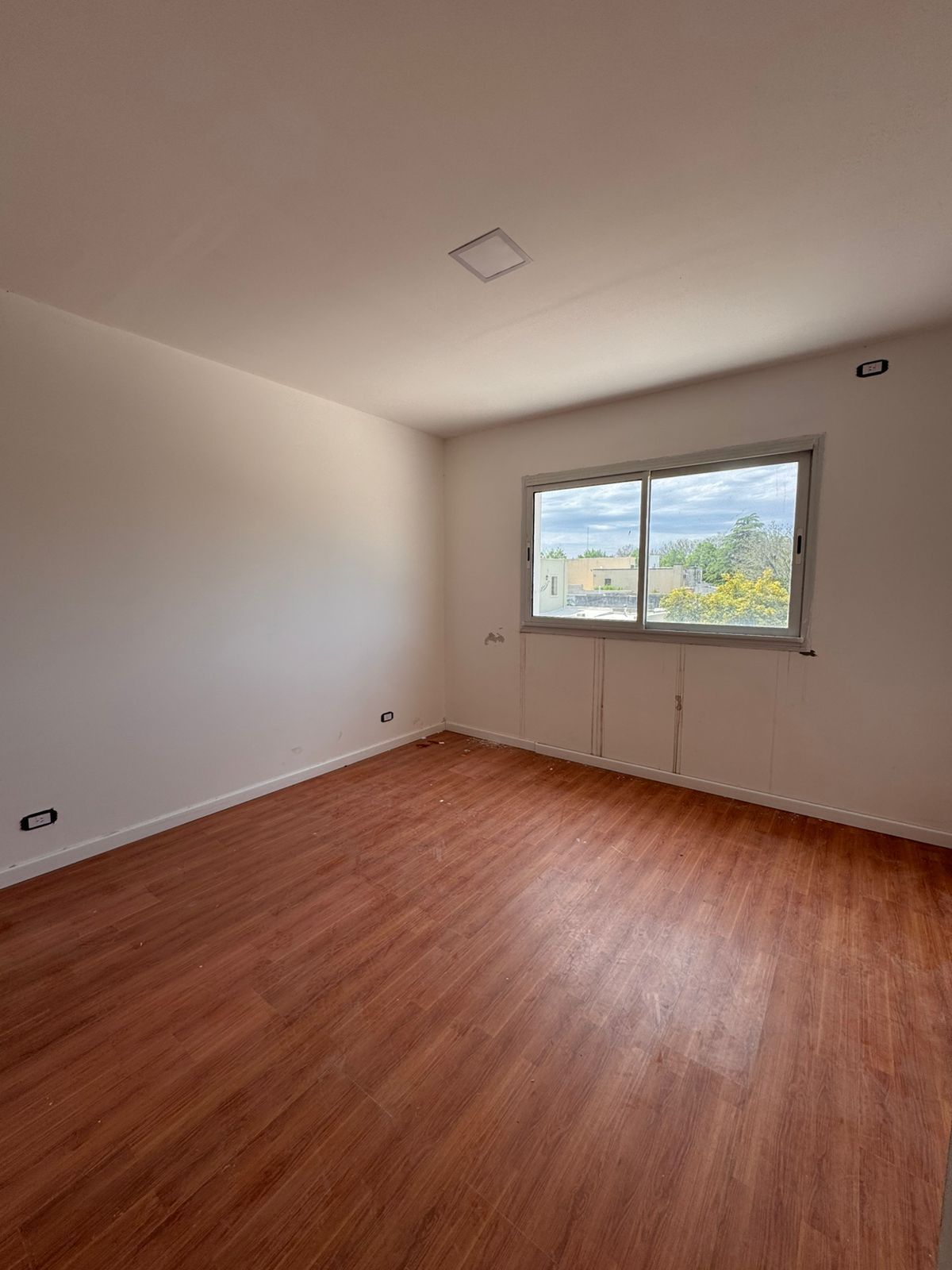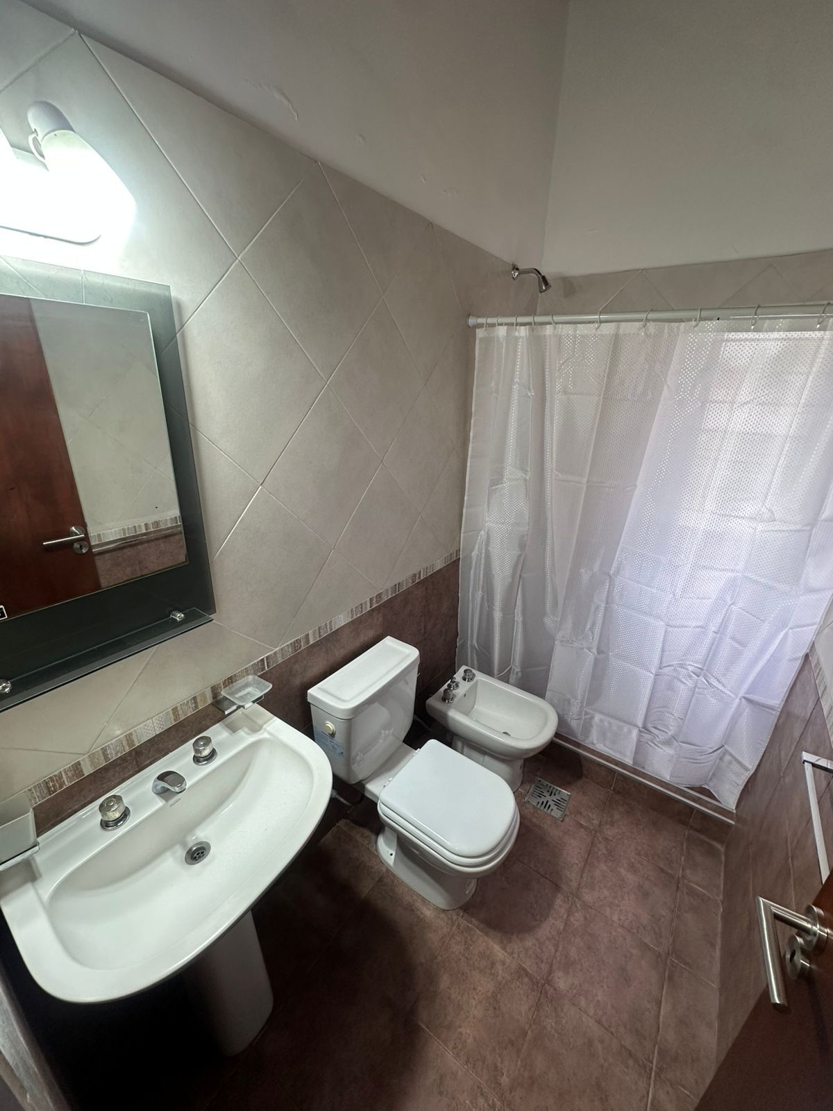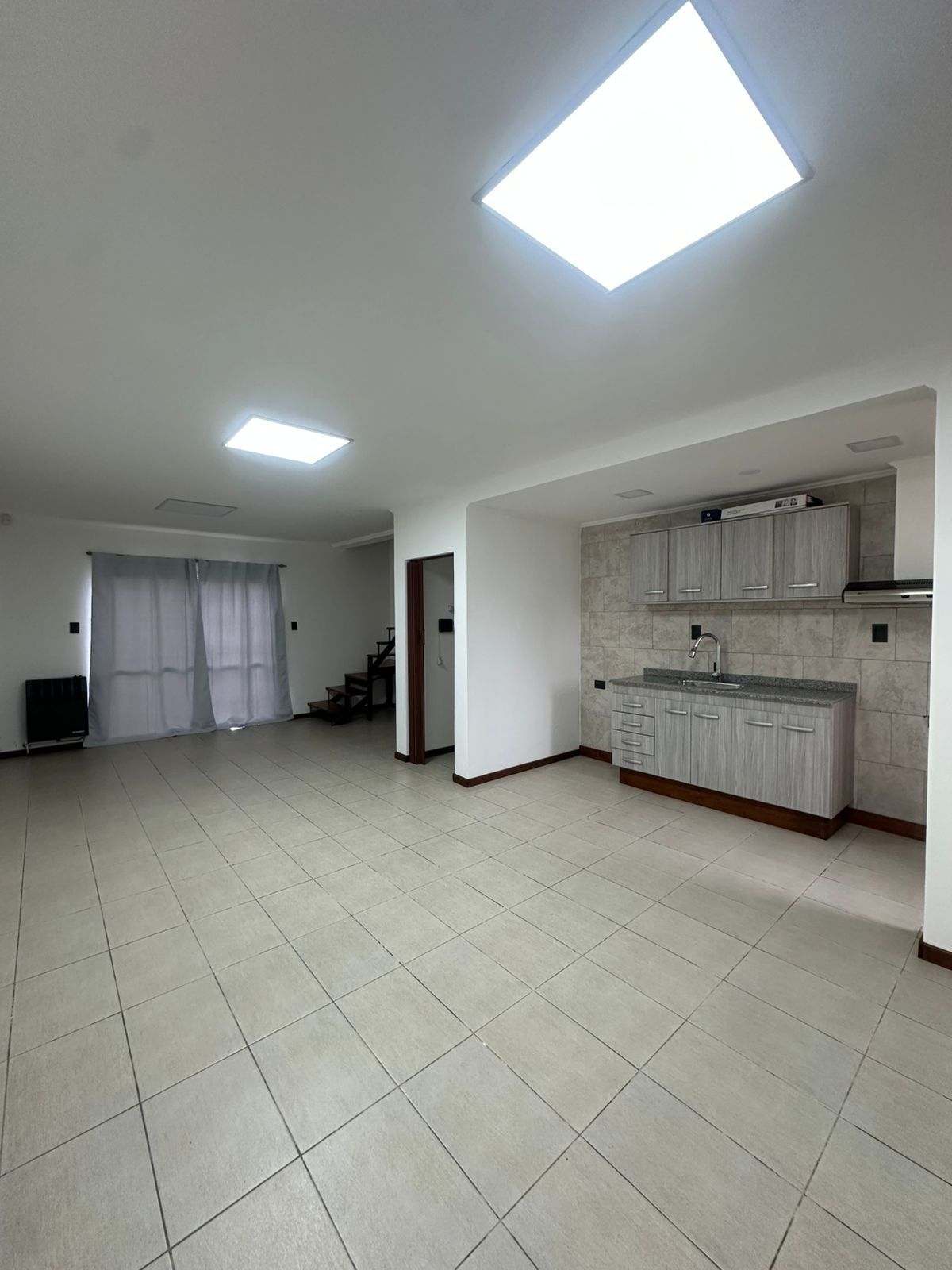 Venta departamento con ingreso de vehículo, en planta baja tiene cocina-comedor, baño, patio y en planta alta, dos dormitorios, baño y balcón