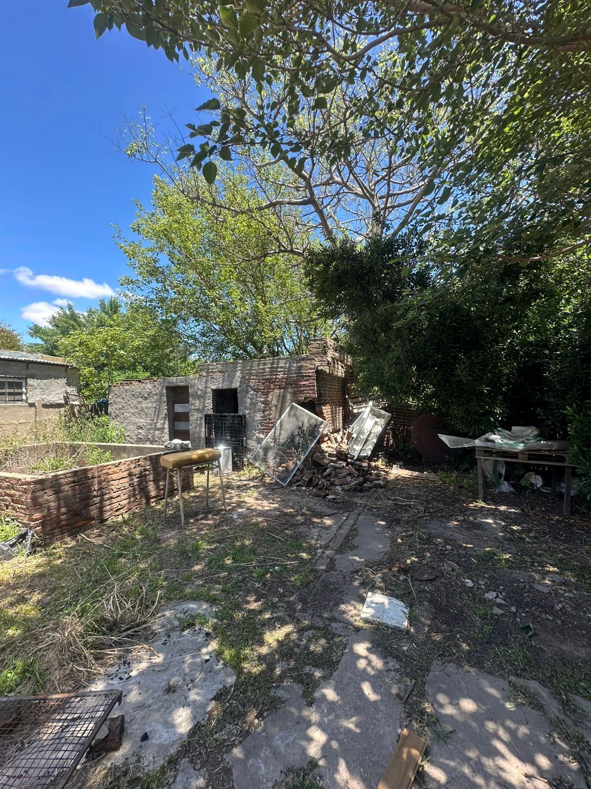 Venta casa a reciclar, living, cocina-comedor, baño, 2 dormitorios, garage doble y amplio patio.